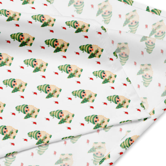 Christmas Gnome Green White Background Bandana